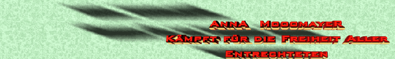 Diese Webseite wurde von mir, Anna Moosmayer in Auftrag gegeben. Sie ist nach meinen Wünschen erstellt, und spiegelt die heutige Gesellschaft mit all Ihren unmenschlichen Machenschaften gegenüber dem sogenannten "freien erwachsenen" Bürger Deutschlands.